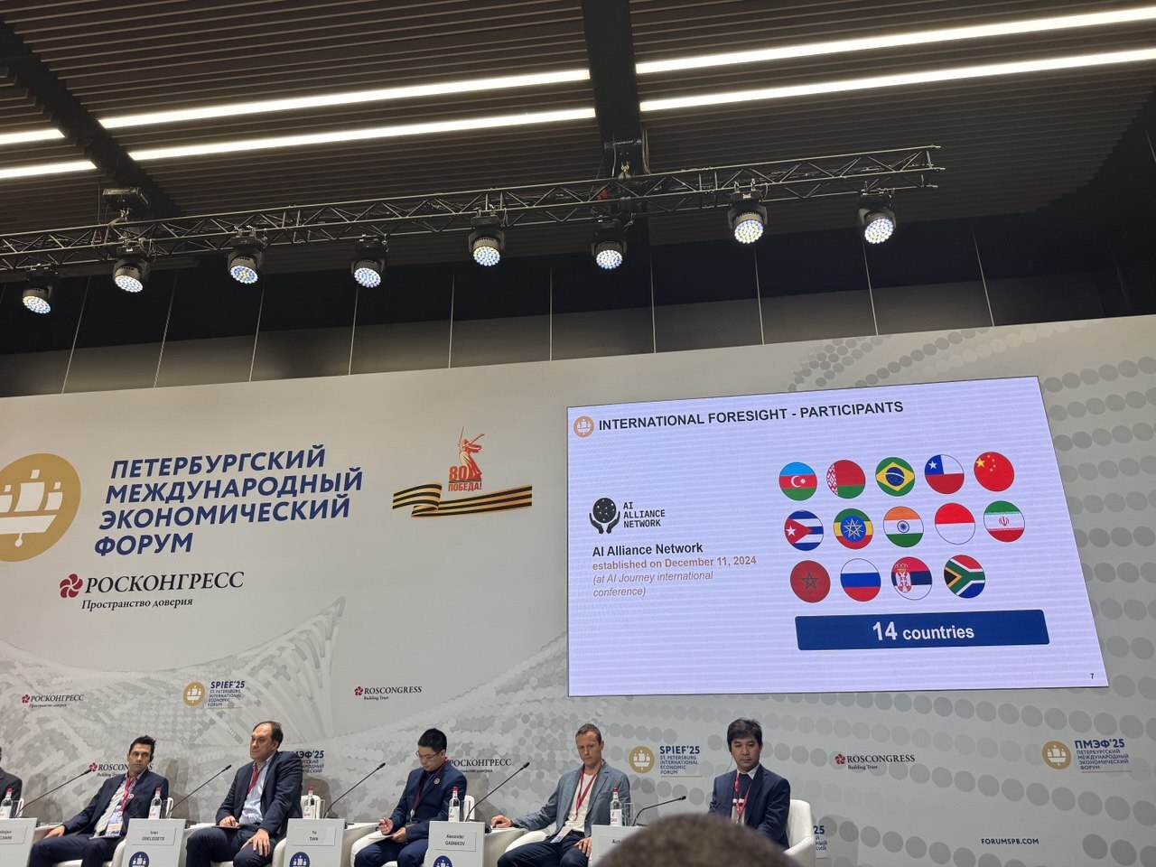 Секция «Наука в сфере ИИ: новый путь к лидерству» — одна из самых насыщенных дискуссий технологической повестки ПМЭФ-2025, прошла 20 июня в конгресс-центре. Модератором стал Дмитрий Чернышенко, вице-премьер России, собрал за одним столом представителей академической и корпоративной науки: Александра Ведяхина (Сбер), Александра Гасникова (Университет Иннополис), Ивана Оселедца (AIRI), Аджита Абрахама (Sai University), Небойшу Бачанина (Singidunum University) и профессора Е Тяня (Anhui University) .